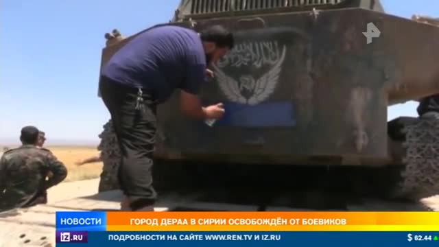 Новая жизнь стартует со сдачи тяжелого вооружения под гарантии российского Центра по примирению враждующих сторон. Теперь уже бывшие боевики закрашивают символику оппозиционной группировки на внедорожнике с пулеметом – классической сирийской тачанке, ставшей символом этой войны.
