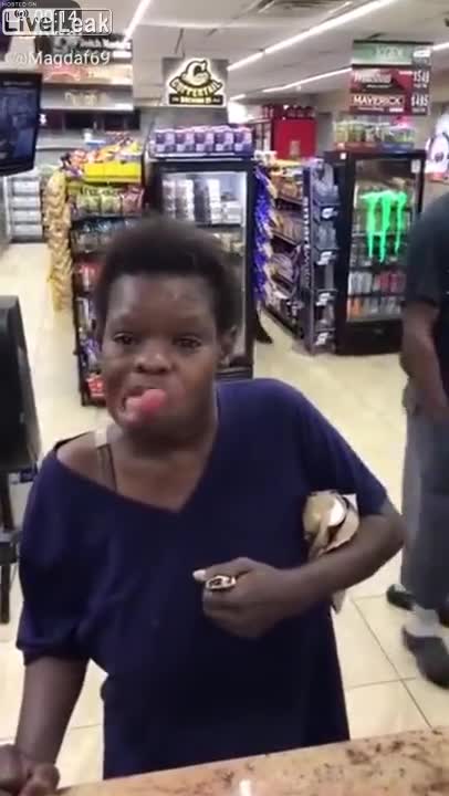На видео темнокожая покупательница демонстрирует автору ролика возможности своего языка.