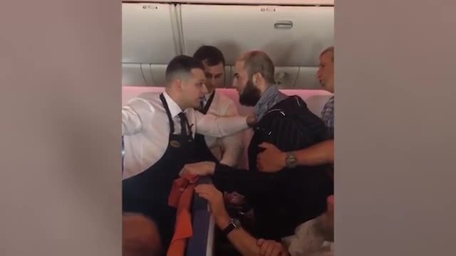 Мужчина атаковал бортпроводников, не прекращая поливать их бранными словами.