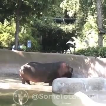 О произошедшем сотрудники зверинца узнали из соцсетей, куда очевидец выложил видео. На нем посетитель перелез через ограждение и похлопал по крупу четырехлетнего бегемота Рози, а потом убежал.