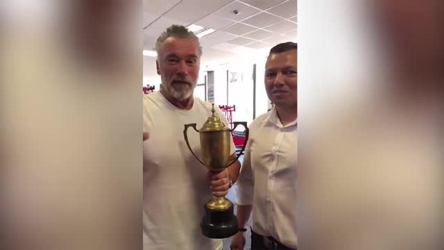 В Сети появилось видео, где американскому культуристу и политику Арнольду Шварценеггеру фанат вернул украденную почти полвека назад награду.