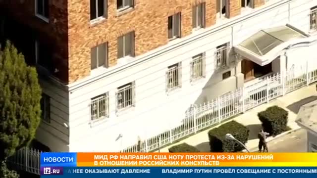 "В связи с продолжающимся грубым нарушением Соединенными Штатами Америки норм международного права в отношении дипломатических представительств и консульских учреждений Российской Федерации на территории США Министерство иностранных дел Российской Федерации выразило Государственному департаменту решительный протест, направив по дипломатическим каналам соответствующую ноту", — говорится в заявлении.