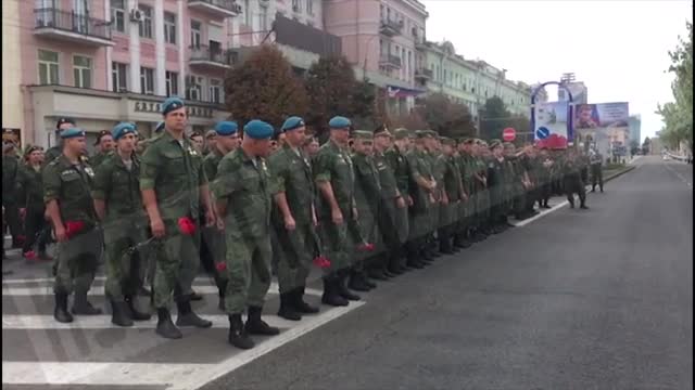 В Донецке проходит церемония прощания с главой самопровозглашенной Донецкой народной республики Александром Захарченко, убитым в результате взрыва в столице ДНР 31 августа.