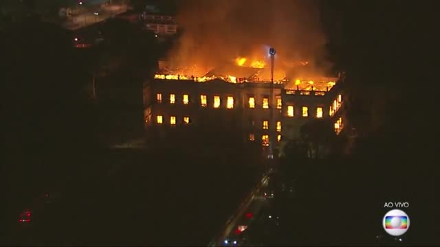 Видео: огонь полностью уничтожил здание Национального музея Бразилии