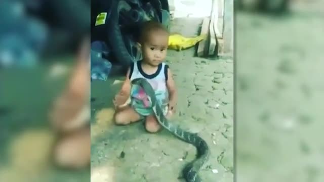 На кадрах малыш, которому на вид меньше года, радостно играет с королевской коброй. Он хватает ядовитую змею за капюшон, в то время как рептилия пытается отклониться. Взрослые, наблюдающие за происходящим, смеются и провоцируют ребенка поцеловать пресмыкающееся.