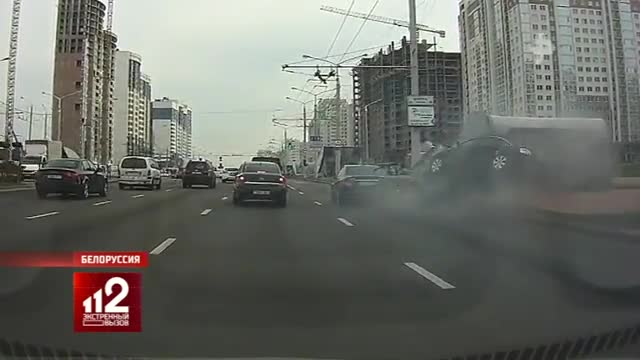 Жесткое ДТП в Белоруссии: иномарка перестраивается в крайний правый ряд, где на высокой скорости едет легковушка.