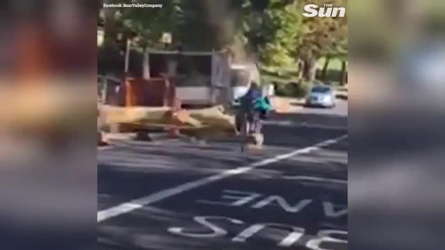 Велосипедист чуть не расстался с жизнью на юге Лондона, когда мертвое дерево упало на проезжую часть менее чем в метре позади него.