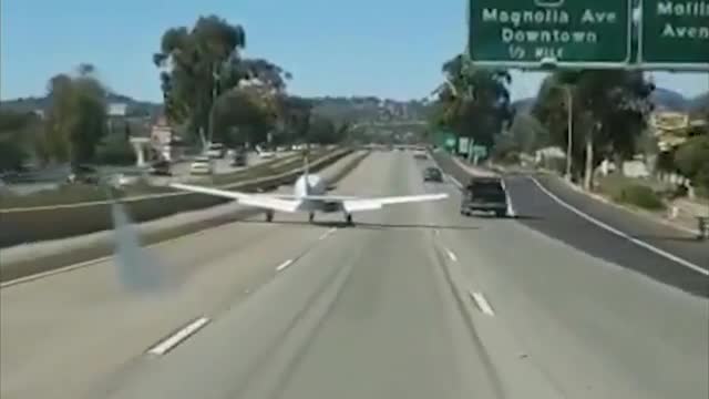 Очевидцы сняли на видео посадку самолета на шоссе в Калифорнии