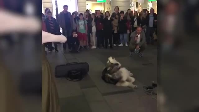 Когда гуляющие по улицам Вены снимали на видео выступление уличной скрипачки, они даже не догадывались, что главным героем ролика станет вовсе не она, а лежащая на земле рядом с девушкой собака породы хаски, сообщает "Ридус".
