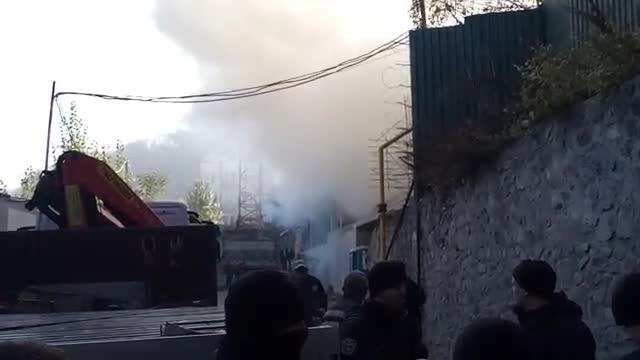 По информации украинского телеканала "Громадське", были брошены некие "предметы, после чего прогремели три последовательных взрыва. Был густой дым с неприятным запахом".