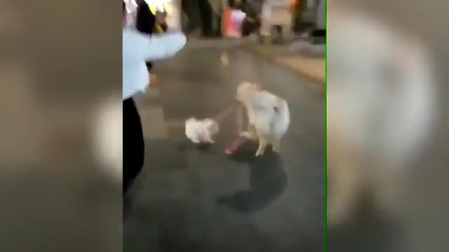 Видео: ретривер "похитил" маленького шпица