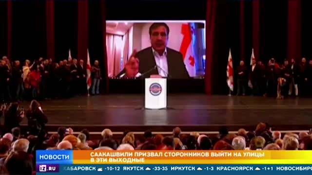 Сам Саакашвили тоже показался, правда, на экране монитора. Сам он находится в Нидерландах. Впрочем, шансы вернуться на родину у Саакашвили тают на глазах. В Грузии его обвиняют в коррупции и организации убийства.