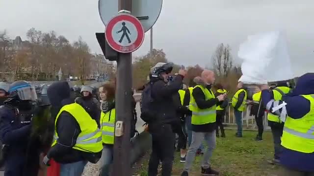 В настоящий момент в центральной части Елисейских полей находится более тысячи манифестантов. Некоторые из них были агрессивно настроены в отношении полицейских, которые перекрыли два боковых переулка, ведущие к Елисейскому дворцу. Протестующие повалили установленный полицией забор.