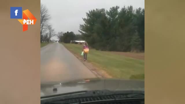 Отец девочки выложил в Сеть видео, на котором его дочь идет пешком, в то время как мужчина сопровождает ее на своей машине.