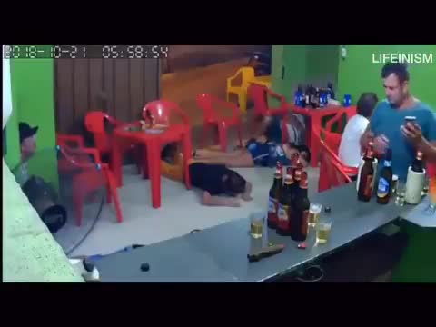 Посетитель бара в бразильском городе Ново-Серрана оказался настолько увлечен перепиской по телефону, что не заметил, как в заведение ворвался вооруженный преступник. Этот забавный момент записала камера видеонаблюдения в кафе.