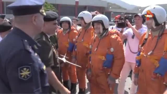 Экипажи торжественно встречали министр обороны Венесуэлы генерал Владимир Падрино Лопес и представители российского посольства.