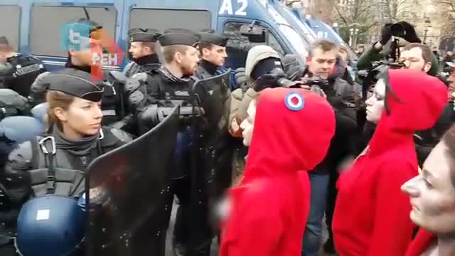 На одной из улиц Парижа на акцию пришлись активистки, оголившие грудь. Они привлекли внимание журналистов и фотографов.