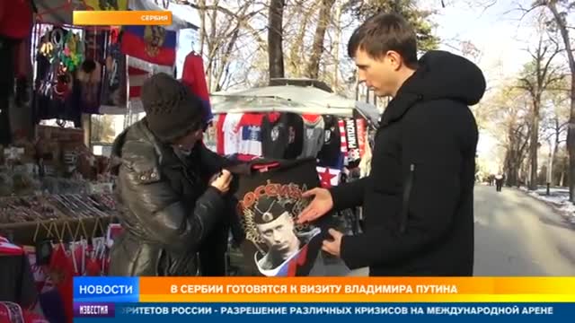 Футболки, кружки и значки с Путиным продавались в Сербии до его визита и будут продаваться после. Все потому, что в самом туристическом месте Белграда торгуют только тем, что хорошо берут. У продавцов есть даже проверенные временем портреты российского лидера.