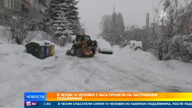 На Центральную и Южную Европу обрушились морозы и снежная буря. На популярном чешском курорте семьдесят человек застряли на подъемнике, на который упало дерево.