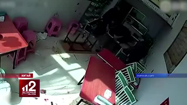 Испанский гость в китайском заведении. В небольшое кафе в одной из провинций Поднебесной ворвался разъяренный бык. Может, ему не понравилось, что здесь едят его сородичей. А может, просто не разбирал, куда бежит.