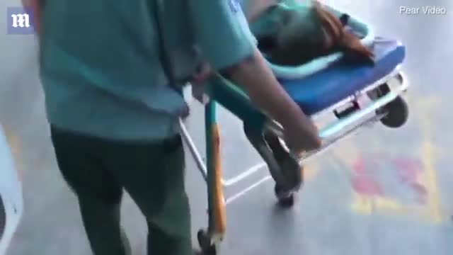 Когда женщина лежала на каталке, животное заботливо клало на нее лапы.