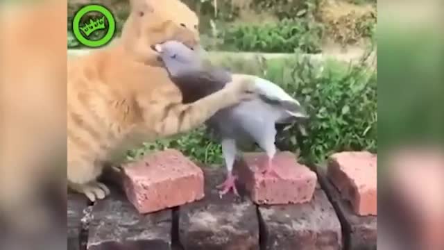 В Сети набирает популярность видео, на котором запечатлены последствия того, как кот и голубь оказались сидящими рядом друг с другом на соседних кирпичах. Ролик был опубликован на "Я плакал".