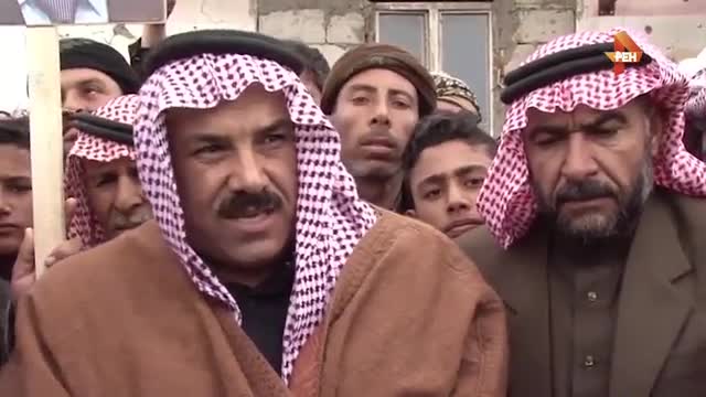 "Сегодня здесь собралось племя Абу Хамад — шейхи, мужчины, женщины и дети — для того, чтобы осудить американскую и французскую агрессию на территорию Сирийской Арабской Республики", — комментирует протест Ахмад Абу Хамад, шейх племени Абу Хамад.