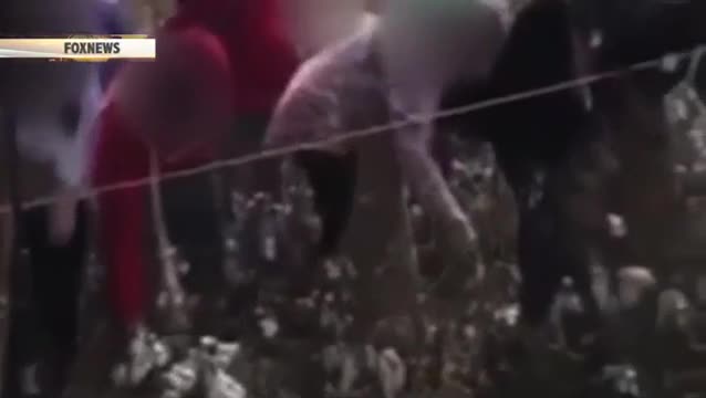 На кадрах видно, как пятиклассники собирают хлопок в мешки, в то время как надсмоторщик бьет в барабан.