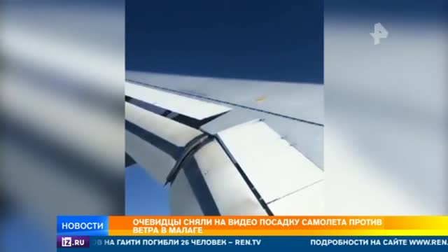 Очевидцы сняли на видео посадку самолета против ветра в Малаге. Морская болезнь в небе настигла пассажиров самолета, который летел из Лондона в Гибралтар. Лайнер вылетел из Хитроу, но был вынужден срочно сесть в аэропорту Малаги из-за сильного встречного ветра.