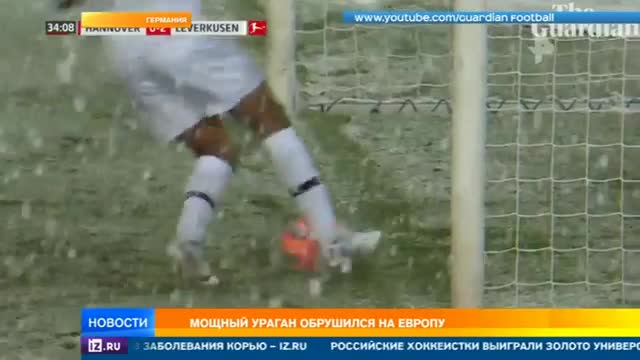 Нападающий японской сборной Генки Харагути, выступающий за "Ганновер", похоже, и сам не понял, что случилось. Из-за мокрого снега мяч просто не докатился до линии ворот. Этот циклон со снегом и скоростью ветра под 120 метров в секунду обрушился сразу на шесть стран.