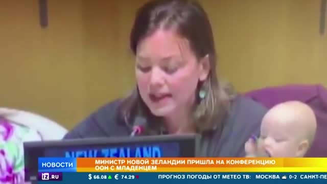 Министр по делам женщин Новой Зеландии Джулия Джентер выступила на конференции ООН, держа на руках младенца.