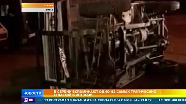 Это телецентр. Сюда тоже попала бомба. Здание за 20 лет так и не отремонтировали. В НАТО потом оправдывались, что это хоть и не военный объект, но функционирует как пропагандистская машина Милошевича. На своих местах погибли 16 человек.