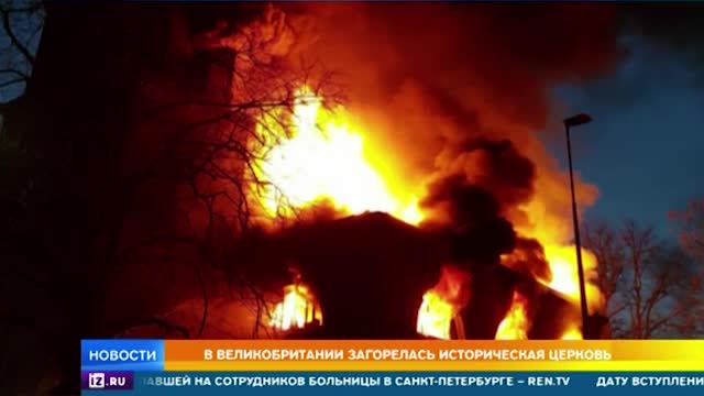Страшный пожар едва не уничтожил старинную церковь в Великобритании. На кадрах видно, что полыхает практически все здание, а столб дыма поднимается на несколько десятков метров.
