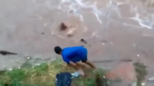 Учитель физкультуры из города Линг в штате Сан-Паулу спас собаку из мощного потока воды.