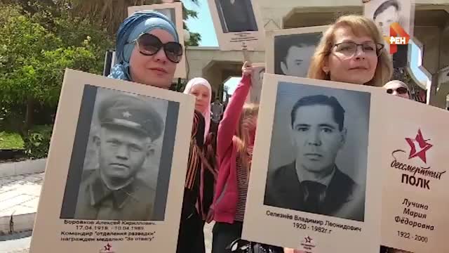 Акция "Бессмертный полк" проходит сегодня в Сирии. Тысячи российских граждан вышли на улицы крупных сирийских городов, чтобы почтить память своих родственников, которые боролись за свободу Родины во время Великой Отечественной войны.