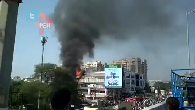 В Сети появились кадры с места крупного пожара в коммерческом здании в индийском городе Сурат, штат Гуджарат.