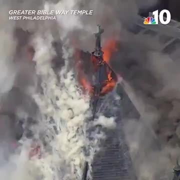 Спасатели борются с серьезным пожаром, который охватил церковь Greater Bible Way Temple в районе Парксайд в окрестностях Филадельфии, штат Пенсильвания.
