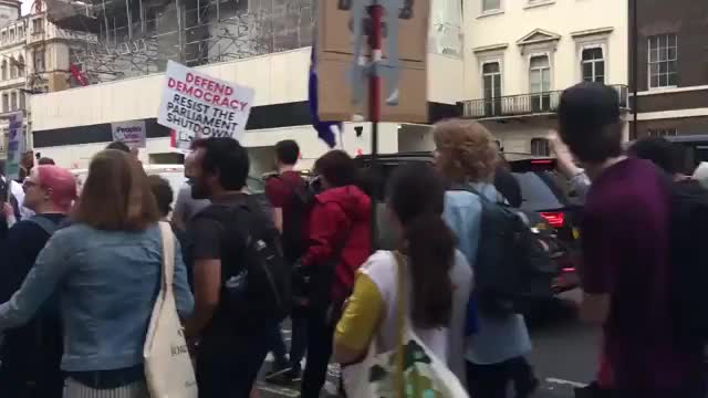 Люди вышли на улицы с плакатами против Джонсона, а около его резиденции на Даунинг-стрит, как пишет BBC News, появилось "надгробие" с надписью: "Покойся с миром, британская демократия".