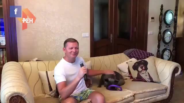 На видео экс-нардеп запечатлен в домашней одежде. Он играет со своей собакой и исполняет популярную и актуальную только один день композицию.