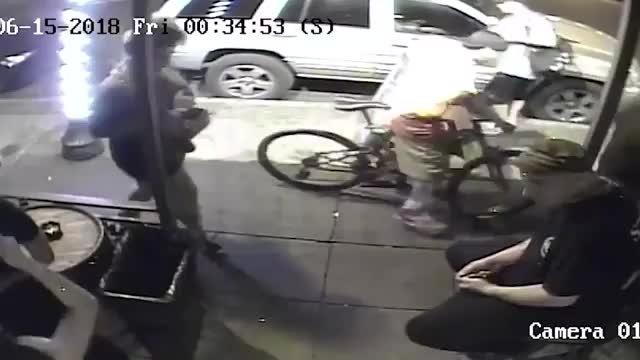 На записи видно, как охрана выставляет на улицу шумных посетителей заведения. В форме охранника находится и Мелвин. Однако он, в отличие от своих коллег, не просто выдворяет дебоширов, а толкает одного из них в сторону и нокаутирует.