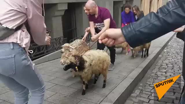 Участники движения "Стыдно" пригнали стадо овец к грузинскому парламенту. Здесь 8 сентября проходит процедура по выражению доверия новому кабмину под руководством Георгия Гахарии.