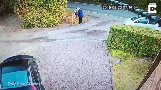 Видео: женщина сбила саму себя, забыв поставить авто на ручник
