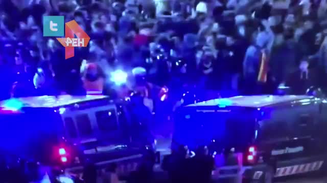 Десятки тысяч человек вышли к представительству Национальной полиции на улицу Лайетана. Радикалы бросались на полицейских.