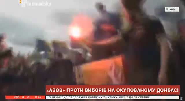 Ранее сообщалось, что колонна радикалов прошла от Национального музея истории Украины во Второй мировой войне к Верховной раде Украины. Они требуют запретить проведение выборов в Донбассе. В шествии принимают участие около 10 тысяч человек, которые съехались со всей Украины.