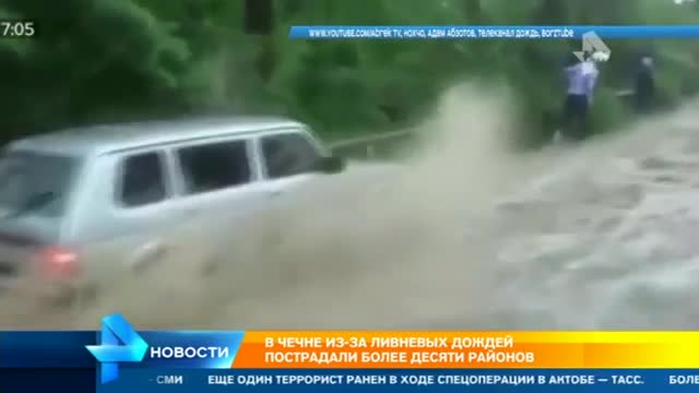 На записи, снятой местными жителями, видно, как водитель внедорожника безуспешно пытается выехать из зоны подтопления по дороге, которая больше напоминает горную реку. Автомобиль раз за разом относит течением на обочину.