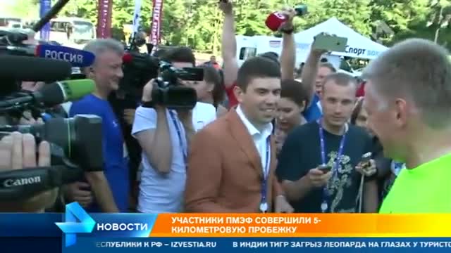 Пресс-секретарь президента пробежал сегодня пятикилометровый марафон в Петербурге.