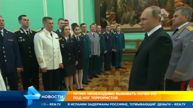 Выбивать почву из-под ног террористов, решительно бороться с преступностью и коррупцией. Такие задачи сегодня поставил верховный главнокомандующий перед выпускниками военных вузов. По традиции в их честь в Кремле состоялся торжественный приём.