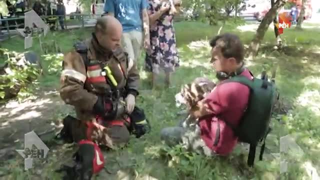В распоряжении РЕН ТВ появились кадры спасения пса из горящей квартиры.