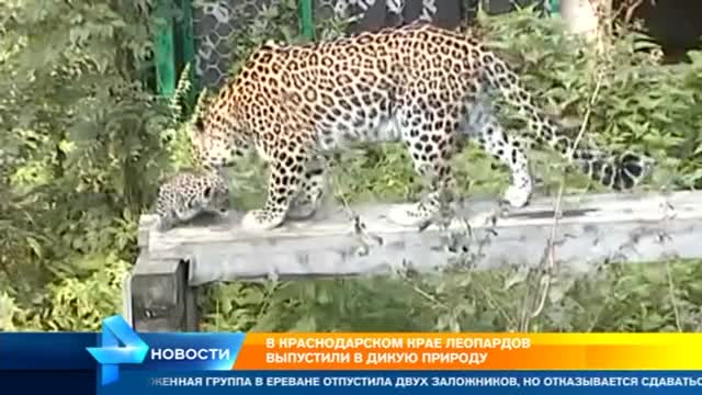 Трех больших кошек выпустили из питомника, где они родились еще в 2009 году. Леопардов к этому выпуску готовили с рождения.