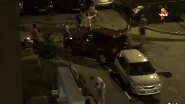 На камеру мобильного очевидец снимает, как компания подвыпивших парней выясняют отношения. На кадрах видно, как один из них уже снял футболку и всем своим видом показывает готовность драться. Соперники выдыхаются довольно быстро.